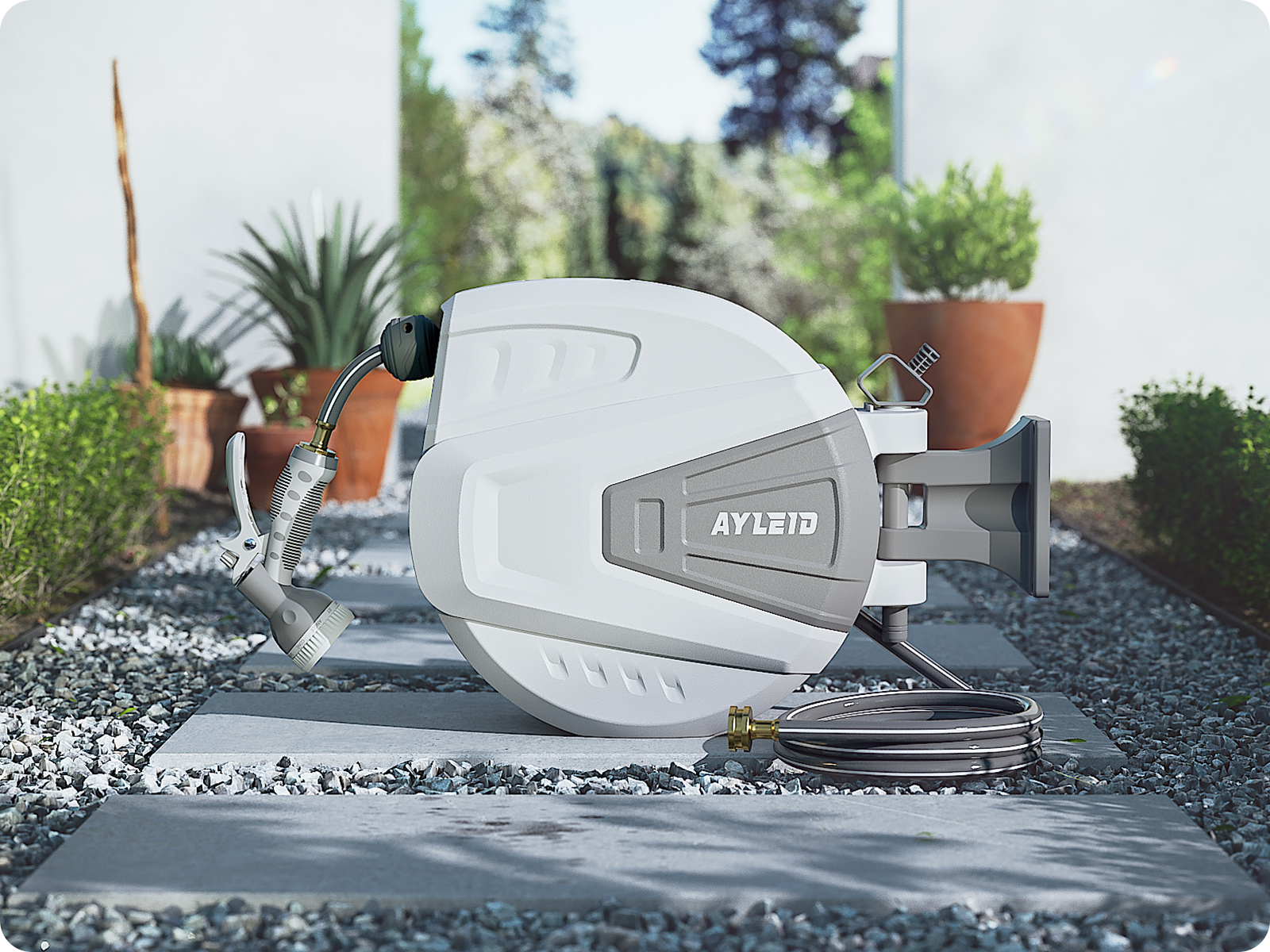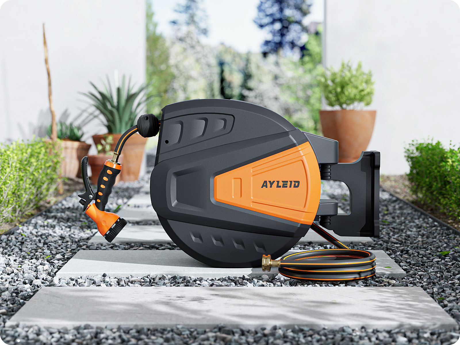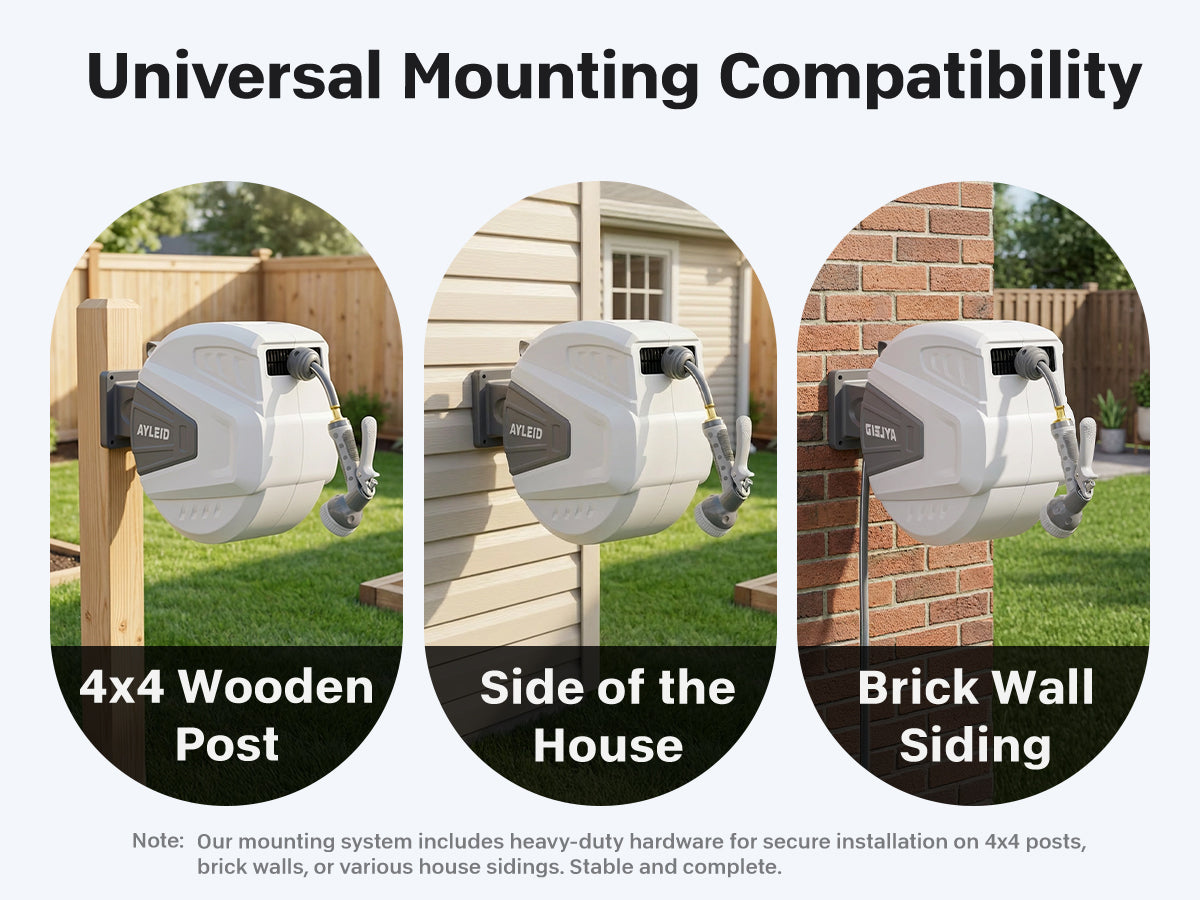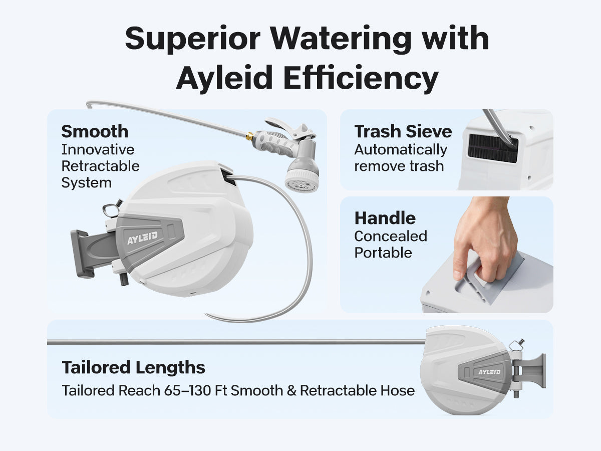 Combining all of the incomparable strengths and personalized designs, the Ayleid retractable garden hose reel aims to bring you convenience.