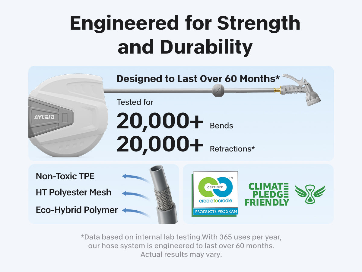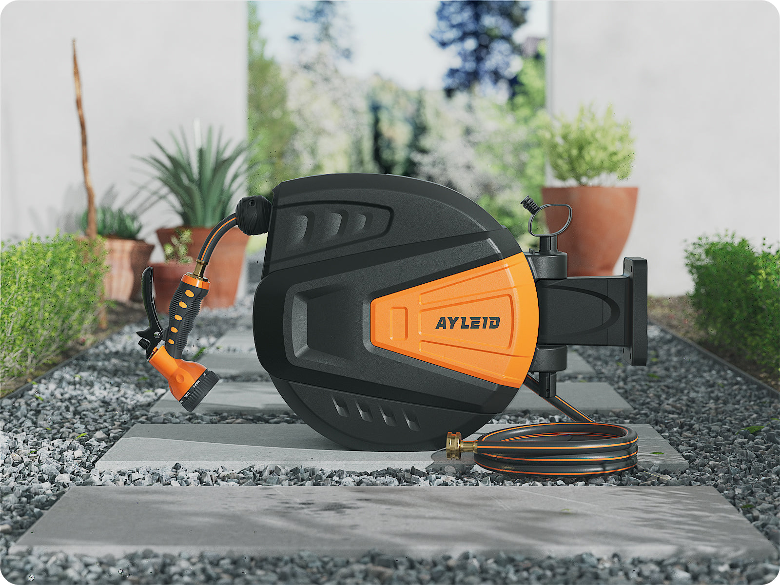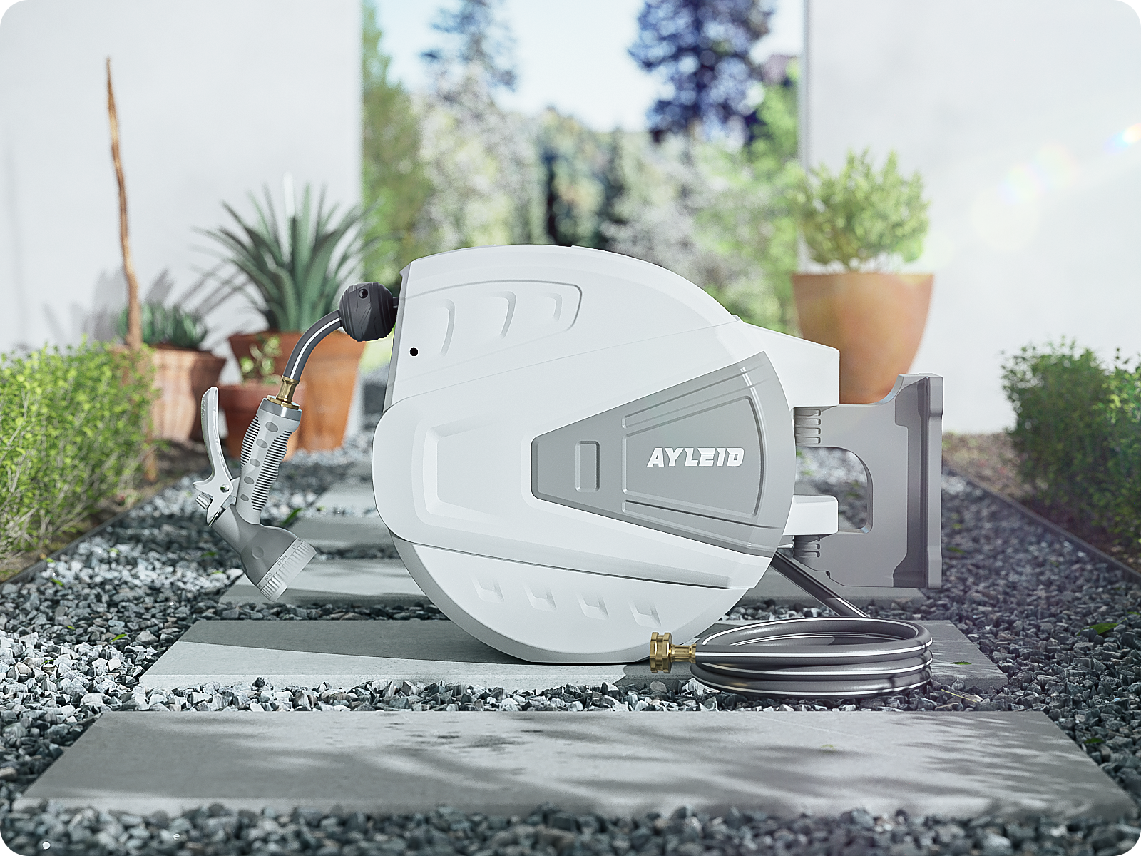 Combining all of the incomparable strengths and personalized designs, the Ayleid retractable garden hose reel aims to bring you convenience.